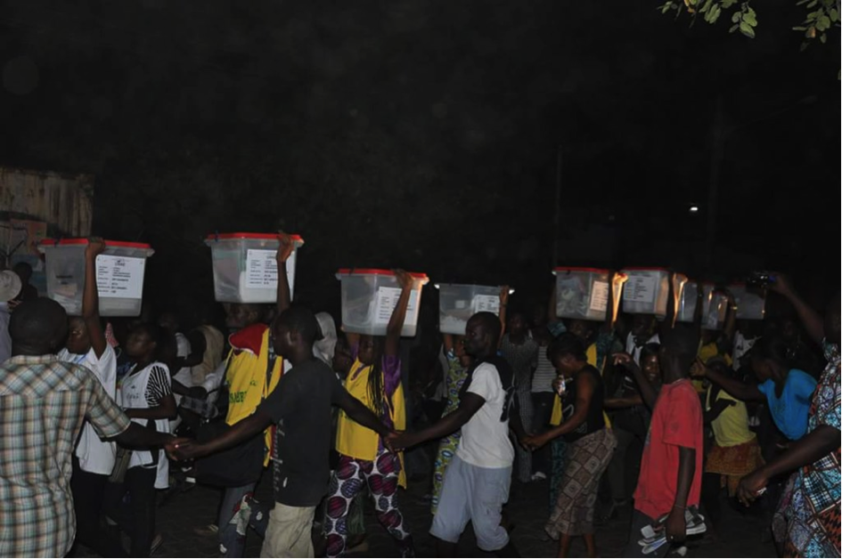 Légende photo : Des électeurs qui escortent les urnes pour éviter toute fraude.