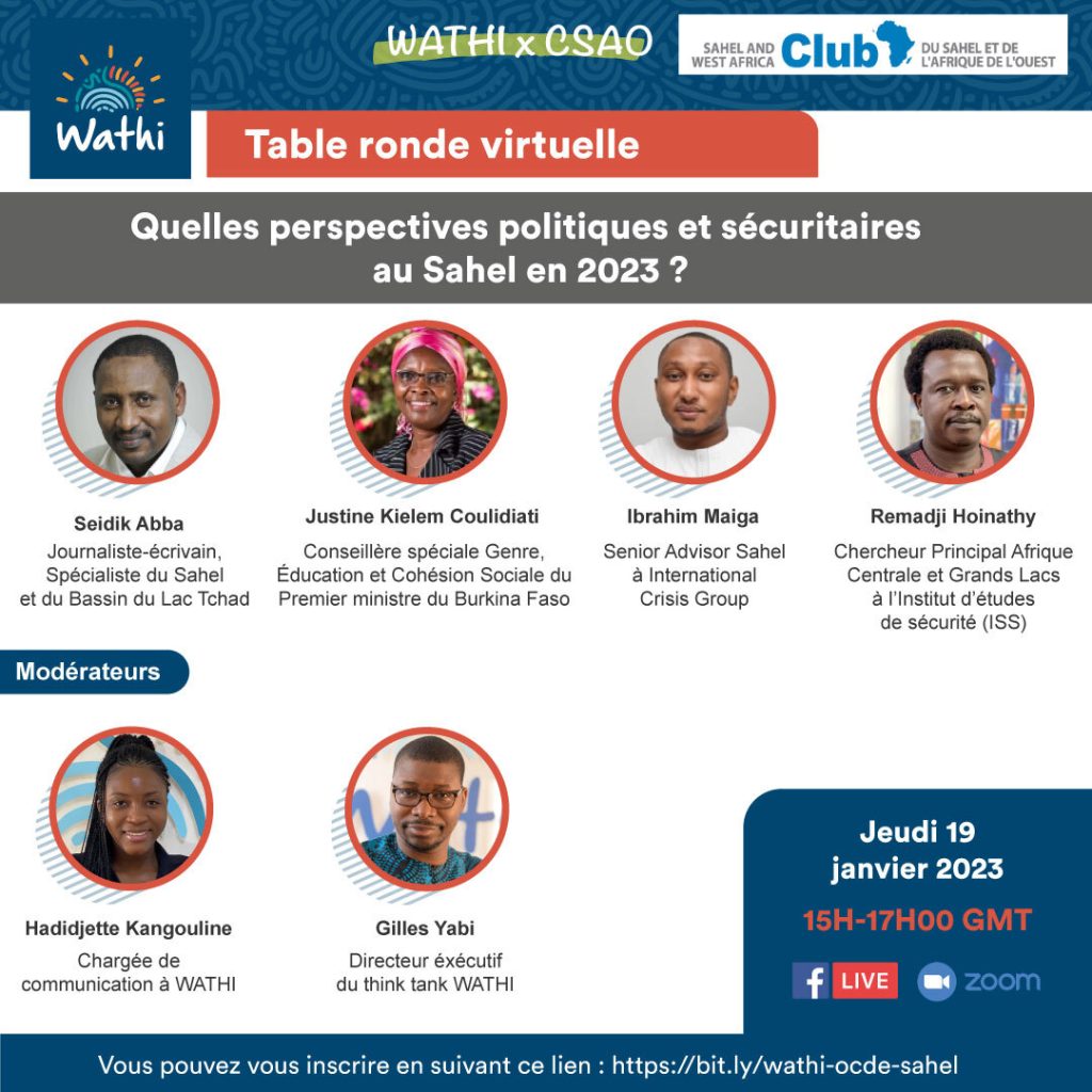 Le Think Tank citoyen WATHI en partenariat avec le club du Sahel et de l’Afrique de l’Ouest (CSAO) lance les conversations sur l’avenir du Sahel et de l’Afrique de l’Ouest. Ce projet s’inscrit dans la continuité des Concertations sahéliennes portées en 2021 par le CSAO et qui constituent un espace de réflexion où la parole libre est échangée entre celles et ceux qui, dans la région, pensent l’équation complexe du développement, de la gouvernance et de la stabilité. En impliquant des acteurs issus de la société civile, du monde académique, d’organisations professionnelles, de laboratoires d’idées et de groupes de réflexion, ces Concertations espèrent faire émerger de nouvelles modalités d’élaboration et de mise en œuvre des politiques publiques au Sahel.