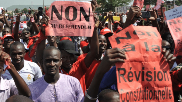 C’est la situation très tendue des mois de juin à août 2017 –avec leurs manifestations contre le projet de réviion constitutionnelle– qui a conduit certaines personnalités politiques à évoquer ouvertement le cas dans lequel le gouvernement serait incapable de mener à terme les élections présidentielles. Chacun sait parfaitement que ces élections pourront au mieux être organisées dans 40 % du territoire (les seules régions de Sikasso, Kayes, Koulikoro et Ségou, mais à l’exception des parties Nord de ces deux dernières) et encore si les groupes armés le veulent bien, ou si leur accord a été acheté au prix de nouvelles faveurs. Et organiser les élections ne signifie pas qu’elles se dérouleront dans des conditions satisfaisantes, et telles que leur résultat sera accepté par les électeurs dans la sérénité.