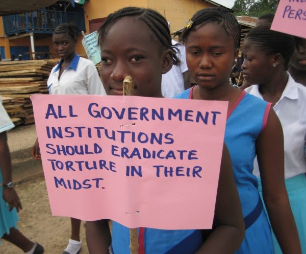 School children rally against torture in Sierra Leone with IRCT member Community Association for Psychosocial Services (CAPS). The new treaty creates a mechanism for children to bring their complaints of human rights violations, such as torture, before an international body.