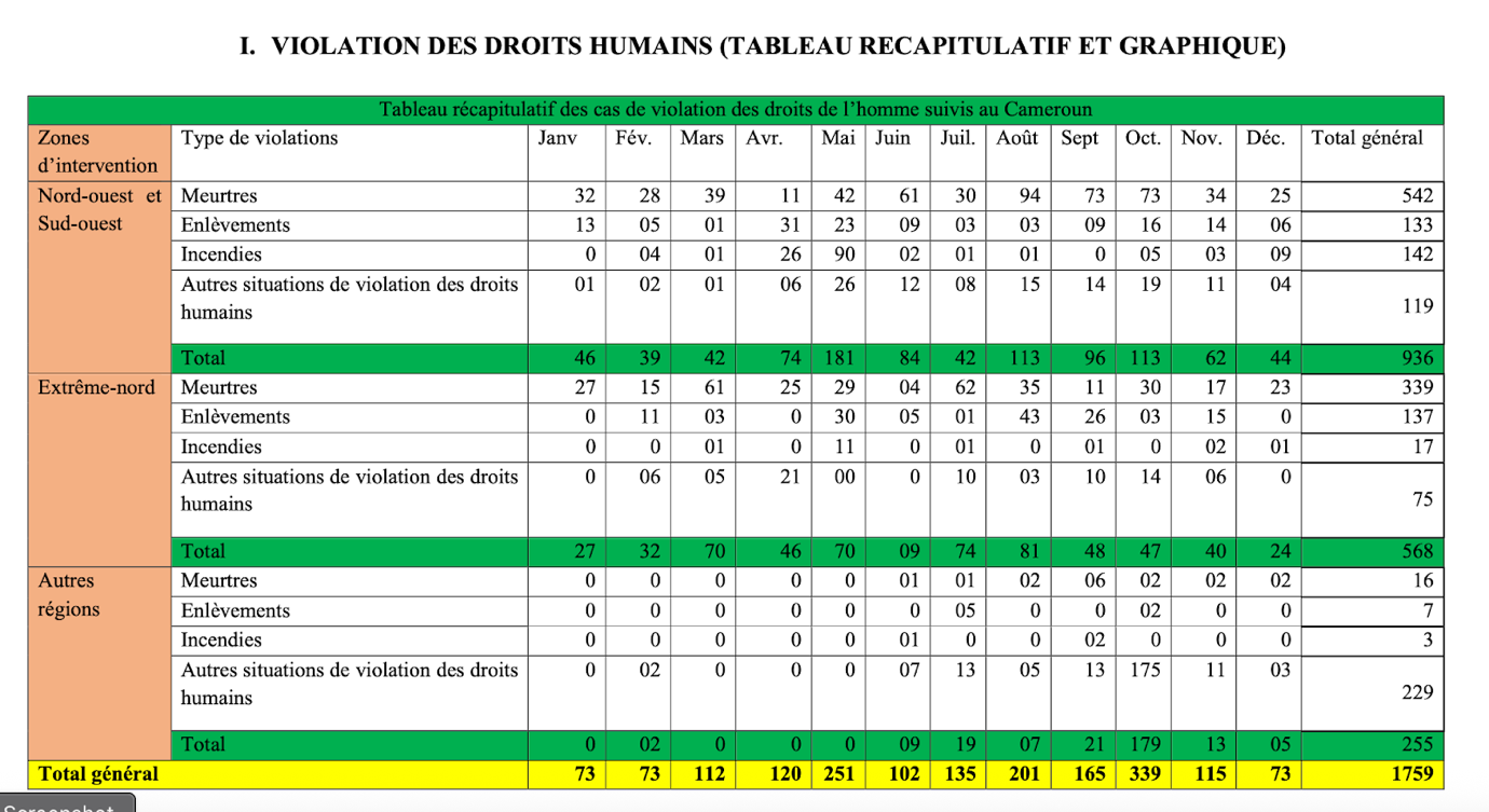 Situation sur les violences et les violations des droits humains de janvier à décembre 2021