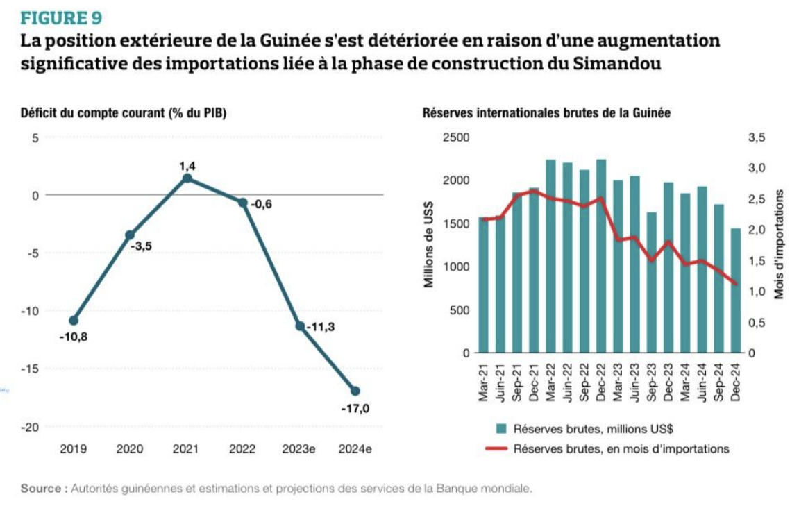 La position extérieure de la Guinée s’est détériorée principalement en raison de la phase de construction du projet de minerai de fer de Simandou
